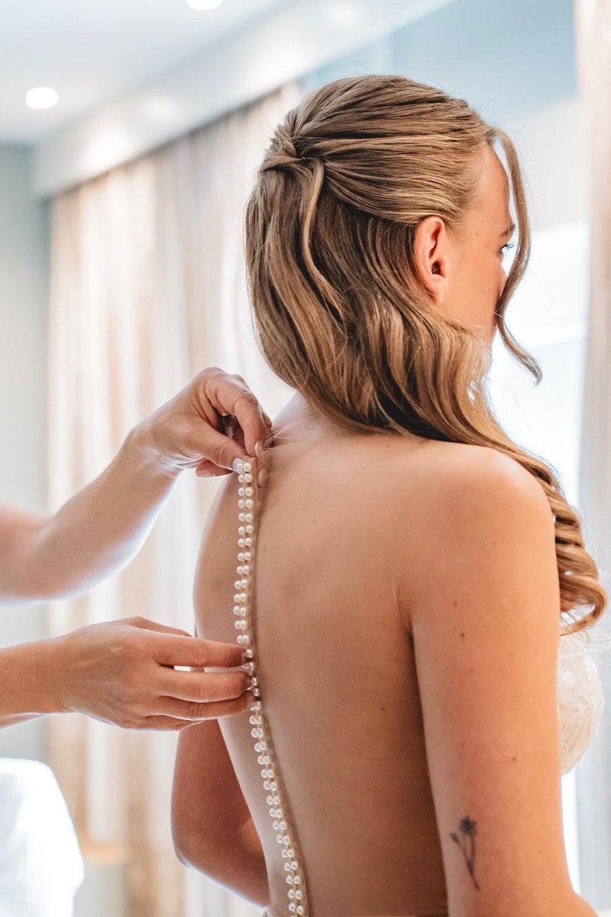” Bij Bodine voel je je op de mooiste maar misschien ook spannendste dag van je leven helemaal op je gemak. Vanaf de trial kwam ik nog een paar keer terug voor m’n haar en wenkbrauwen en het was fijn om alvast een band op te kunnen bouwen. Tijdens mijn meerdaagse bruiloft bleef ze tijdens de foto’s erbij om ervoor te zorgen dat haar en make-up steeds goed zat. Geen overbodige luxe bij 37 graden in Rome!